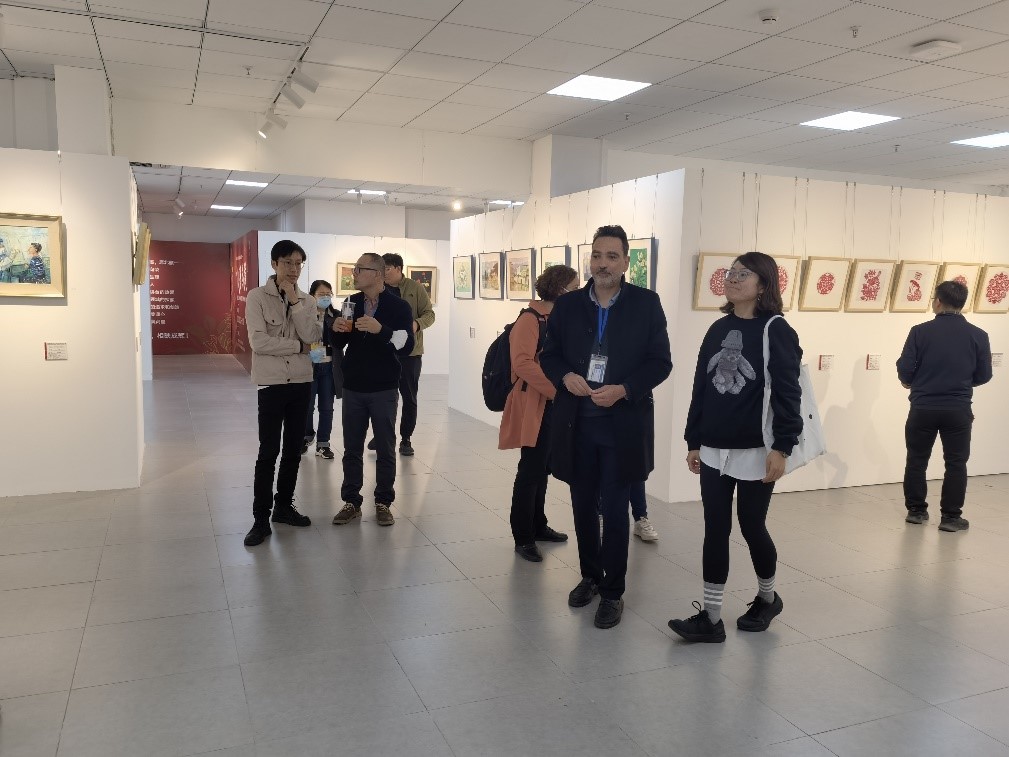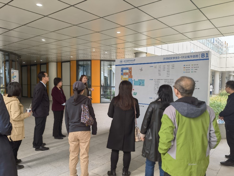 各位教师首先参观了沙河校区的西区学生公寓下沉空间公共设施,图书馆新阅读体验馆、党团活动共享空间,教师共享空间等一系列先进的共享功能场所吸引了各位老师的注意力,春华、天问、揽月、秋实四个园子的景色也让各位老师赞叹不已,纷纷表示能在这样的环境中工作学习是一种享受,法国老师也对沙河校区的设施表示赞赏。在艺文空间教师们还参观了教职工绘画、摄影等艺术作品展览。
